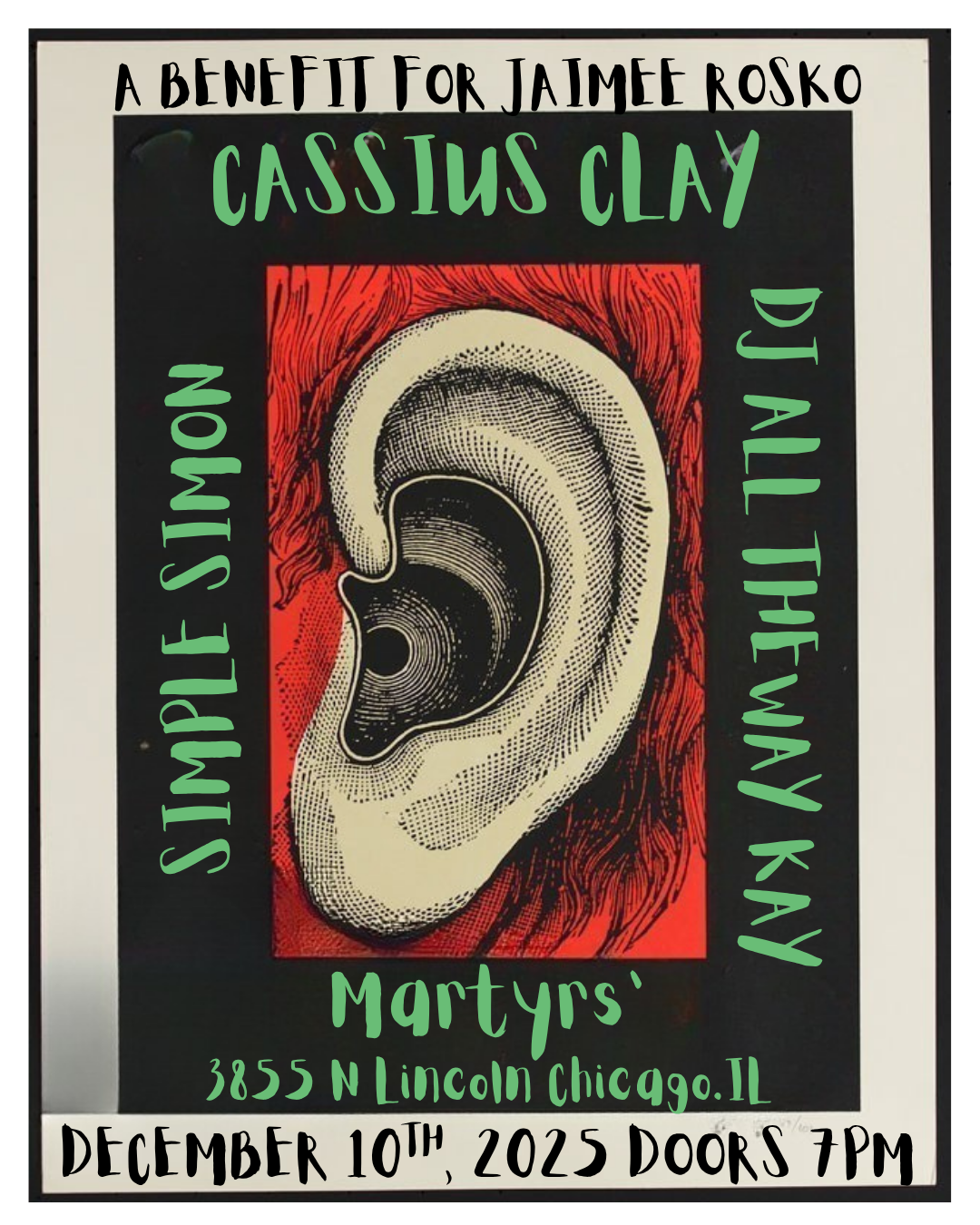 This benefit will be one for the ages. The reunion of Cassius Clay, supported by the reunion of Simple Simon, and All The Way Kay on the 1’s and 2’s!